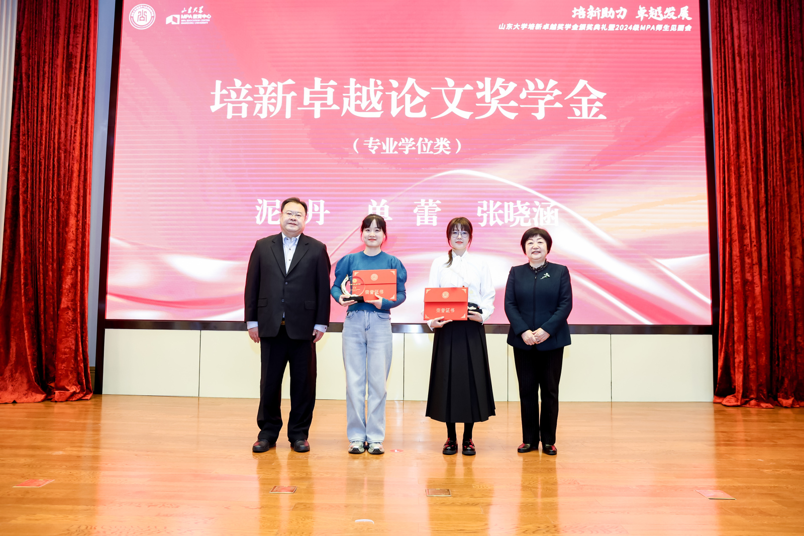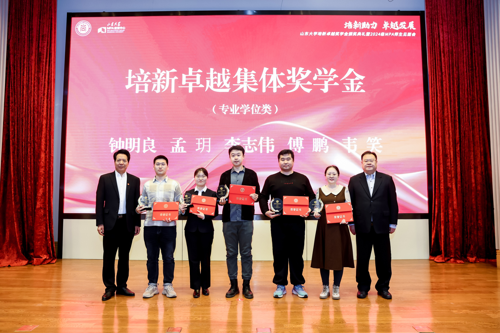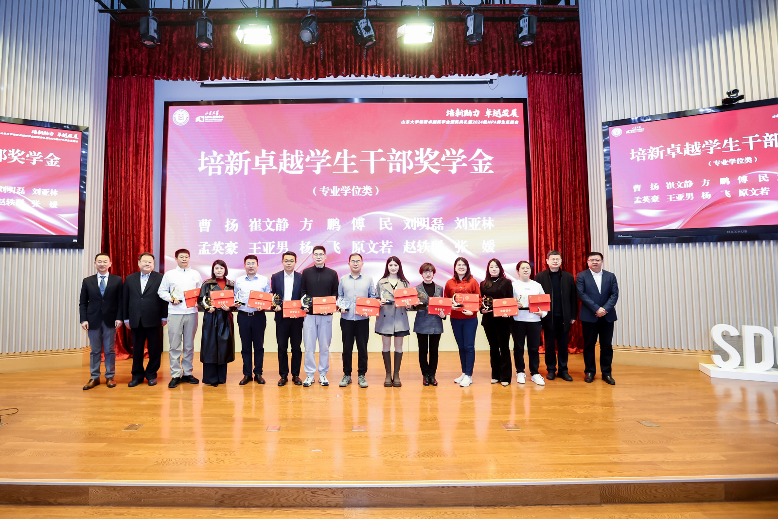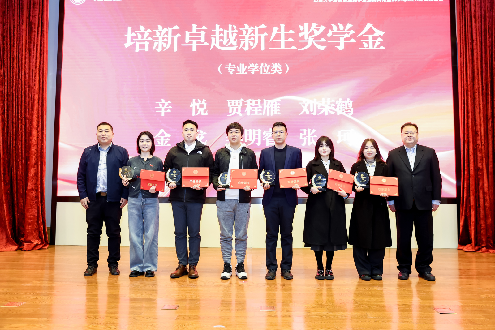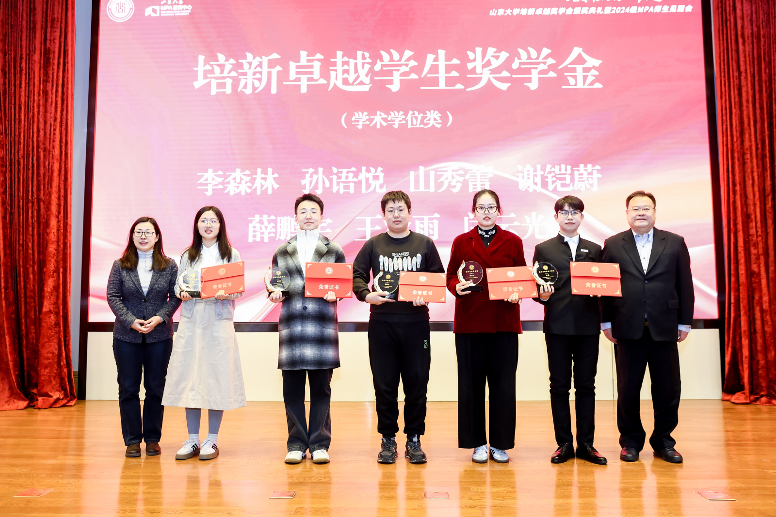 山东大学培新卓越奖学金是由培新集团捐赠,旨在支持山东大学教育事业的蓬勃发展,培养具有爱国情怀、社会责任感、专业水平突出和创新精神的公共管理人才。本年度 33名同学获奖。此次颁奖典礼肯定了获奖学生成绩,彰显培新集团对学校学科建设与人才培养的推动作用,又逢山东大学 MPA 教育办学二十周年,该奖学金将为其高质量发展强力赋能。