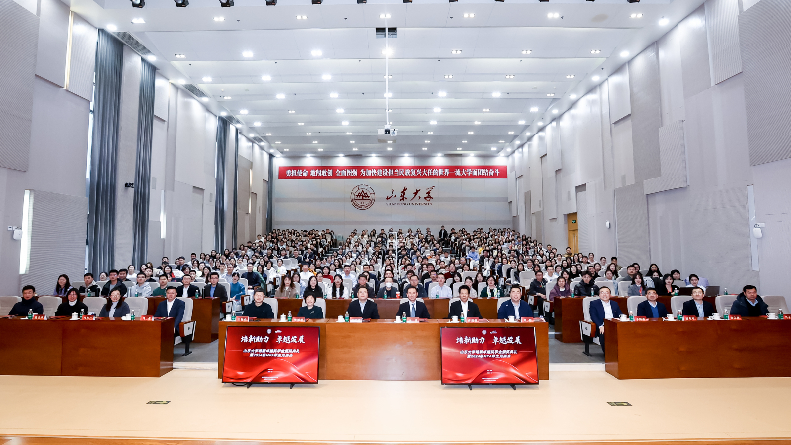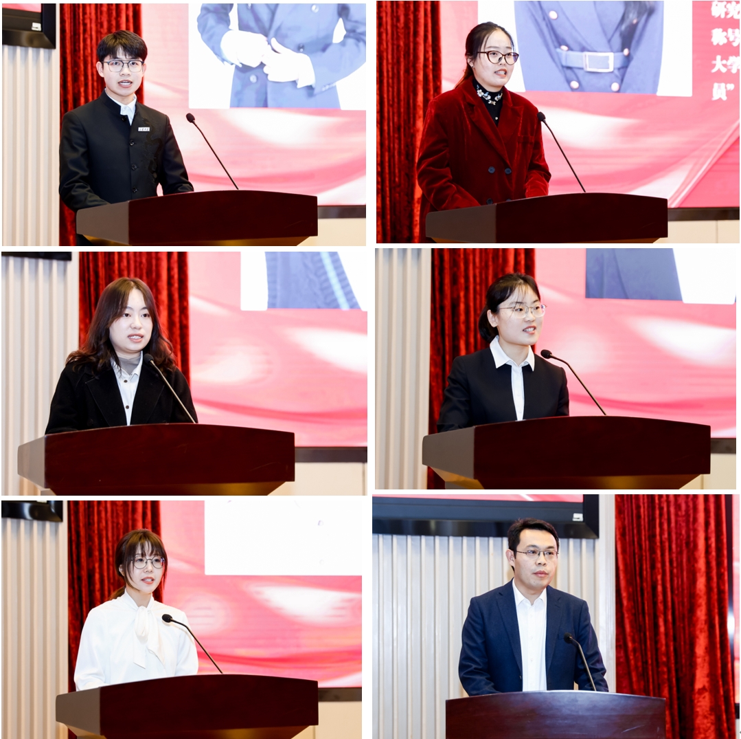 在学生代表发言环节,2021级行政管理专业本科生谢铠蔚、2022级政治学理论专业硕士研究生王泽雨、2024级 MPA研究生辛悦、2023级MPA研究生孟玥、2021级MPA研究生张晓涵以及 2022级MPA研究生刘明磊六位同学依次发言,他们从各自的角度分享了在学业追求、团队协作、个人成长等方面的感悟与思考,展现出山大政管学子立志成才、报效国家的责任担当的深刻理解。