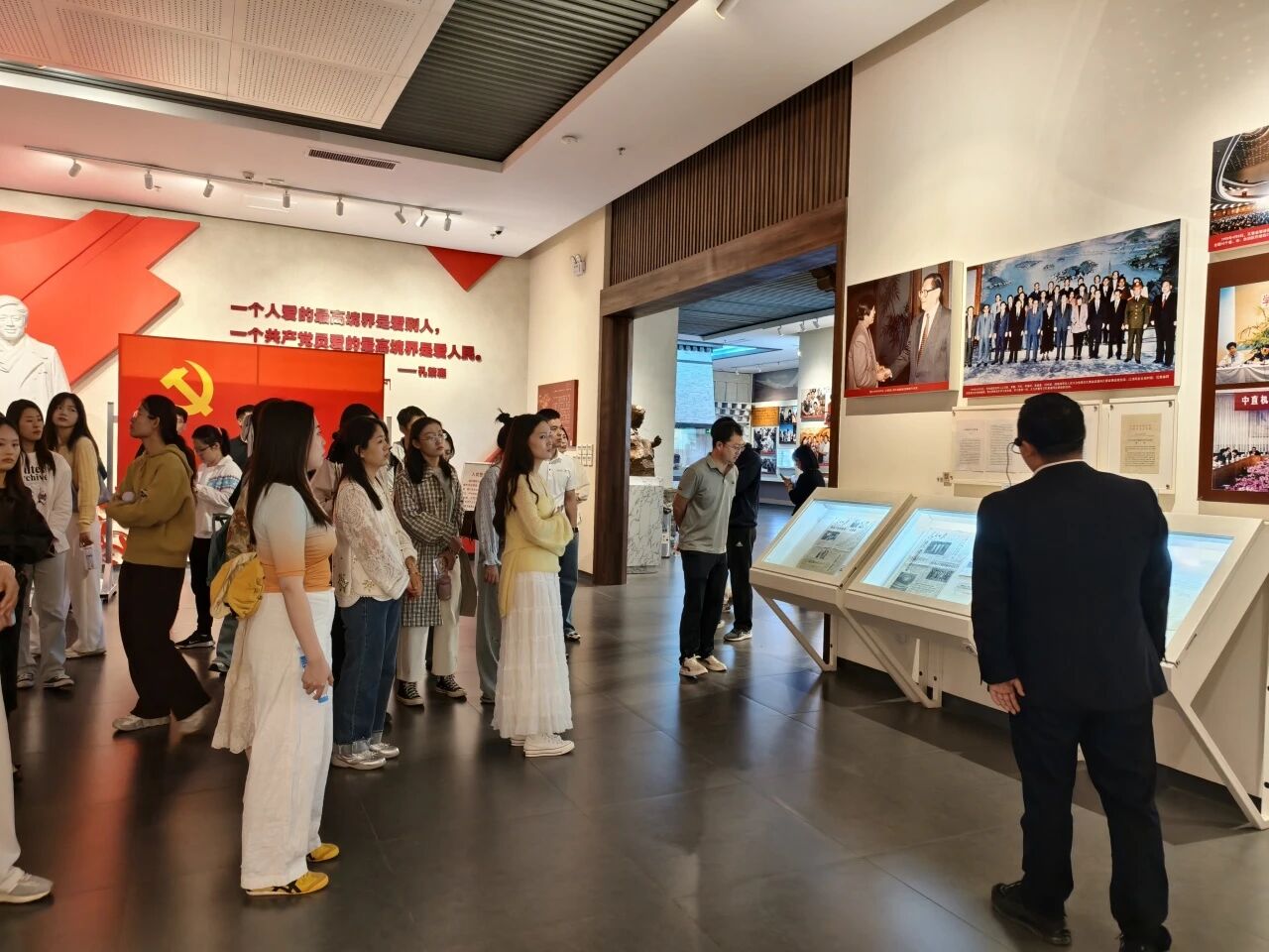 上午,师生一行抵达孔繁森纪念馆。在数字化展陈区,师生们通过AR实景还原技术"穿越"至雪域高原,身临其境感受孔繁森同志在阿里地区顶风冒雪走访牧民的动人场景。负责人介绍,馆内运用AI数字人技术,以95%的高度还原度再现孔繁森同志的音容笑貌,通过实时语音交互为参观者讲述援藏故事。同时,借助智能导览系统,同学们通过手机扫码的方式,即可获取个性化导览内容,包括文物3D模型、历史影像资料等,实现“指尖上的红色教育”。讲解过程中,同学们围绕“数字化展陈如何赋能基层党建?”“公共文化服务如何平衡技术应用与精神内核?”等问题开展热烈讨论。